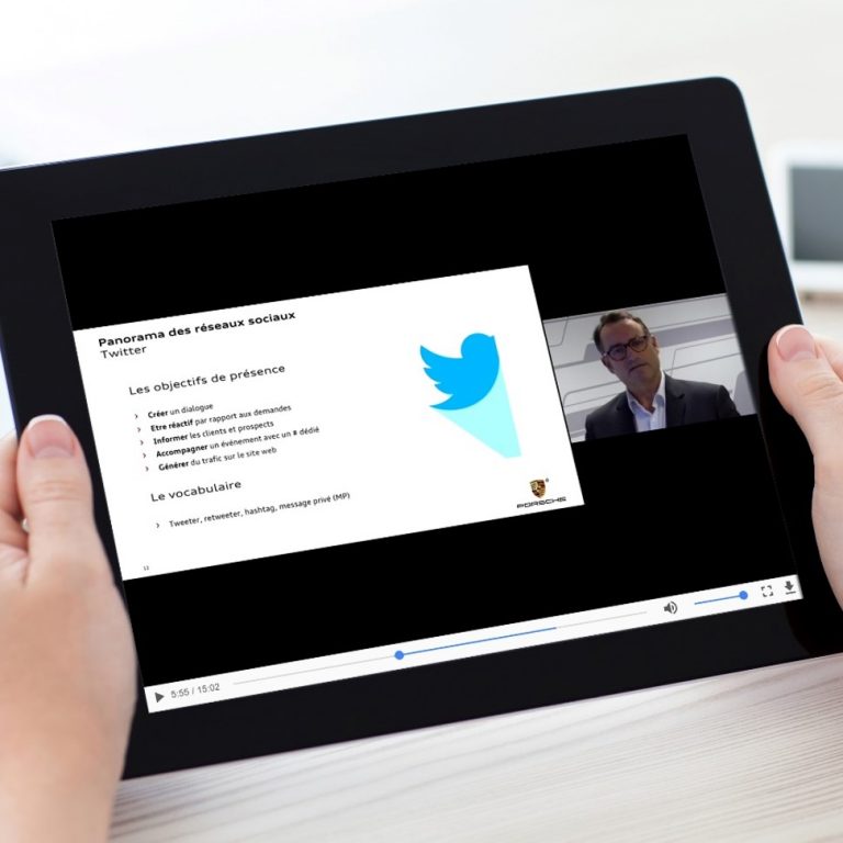 Vidéo d’un formateur associée à une projection power point qui permet de diffuser un contenu assorti d’explications détaillées et techniques.